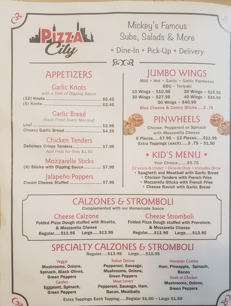 Welcome to Pizza City, where New York-style pizza meets warm, family-oriented hospitality. This gem, nestled in Daytona Beach, offers a vibrant menu that will satisfy any craving. Diners rave about the generous pizza slices and massive Stromboli, complimented by mouthwatering stuffed shells and garlic knots that are simply unforgettable.